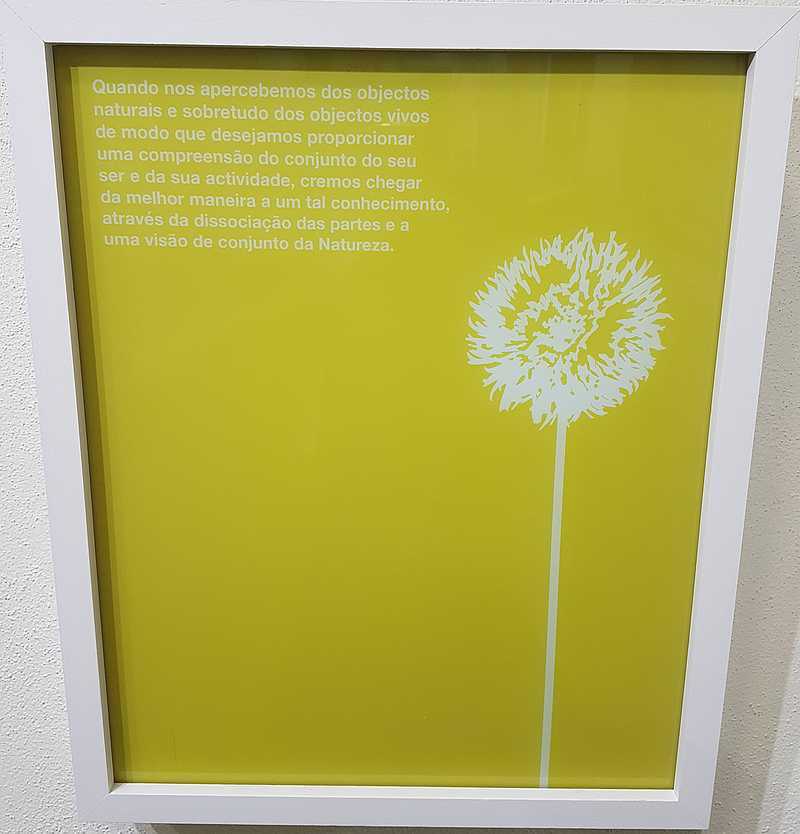 A razão desta lógica parece justificar-se de acordo com o facto da nossa linguagem e dos nossos pensamentos, relativamente a coisas naturais, considerando por exemplo uma planta, terem à sua volta uma espécie de balão de informação repleto de associações. A “coisa” tem as suas qualidades físicas e o respetivo “balão” gera todo um contexto metafísico, produto de uma estética, história ou mitologia. Temos vivido na presença de um mundo natural com o qual temos tido oportunidade de desenvolver relações próprias. A velocidade com que temos vindo a equacionar novas imagens é de uma intensidade indescritível. Não temos tido naturalmente o tempo necessário para nos envolvermos mais intimamente com todo este material. Tentar devolver a estas coisas maior significado é definitivamente um dos grandes desafios da arte atual.